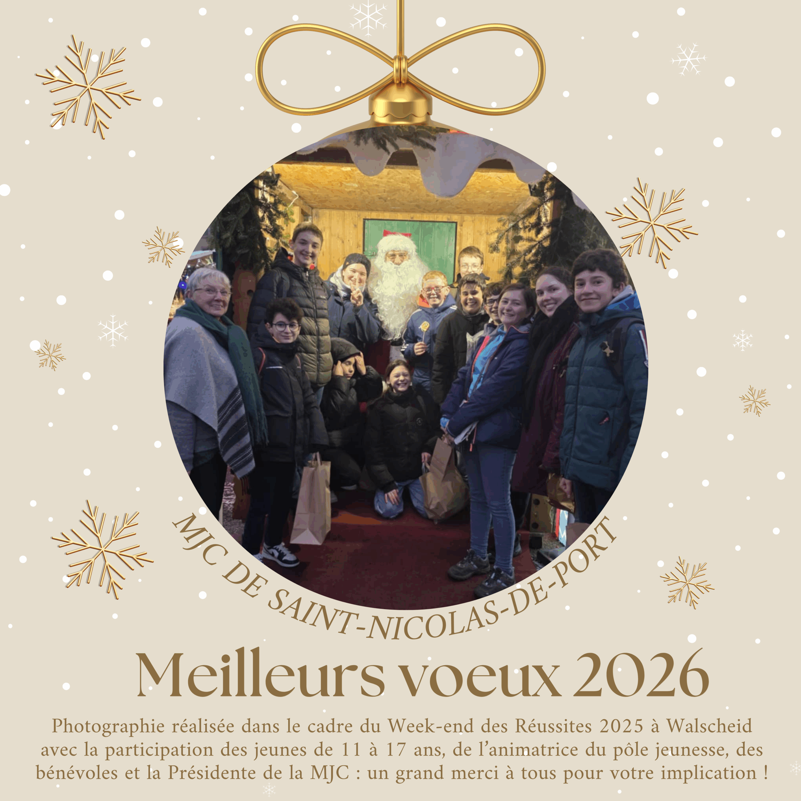 Vœux 2026 par MJC · 5 janvier 2026 Marie-Thérèse Bonnefoux, Présidente de la MJC, l’ensemble des administrateurs, les adolescents des projets jeunes, les employés et bénévoles de la MJC, vous souhaitent une belle et heureuse année.