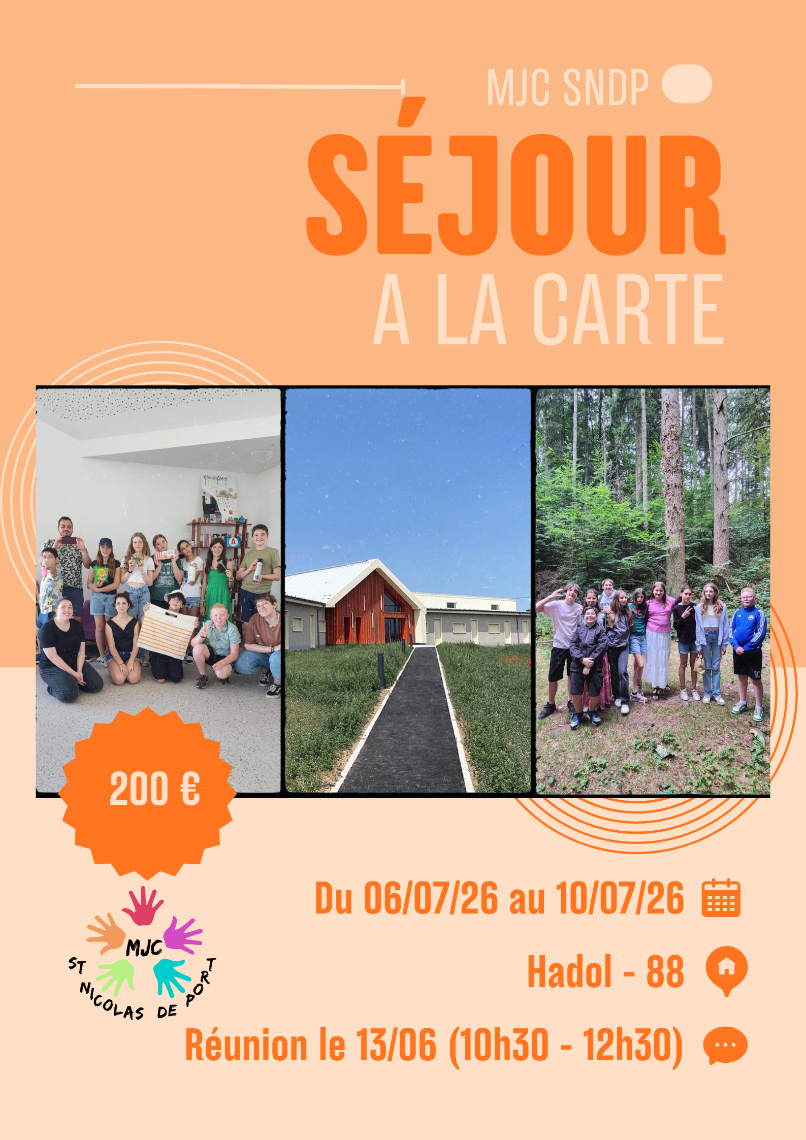 Pour permettre cette organisation, il sera impératif que les jeunes soient présents à la MJC le 13/06 de 10h30 à 12h30 afin de fixer en amont les repas, sortie, grands jeux… pour permettre à l’équipe d’anticiper les achats et réservations.